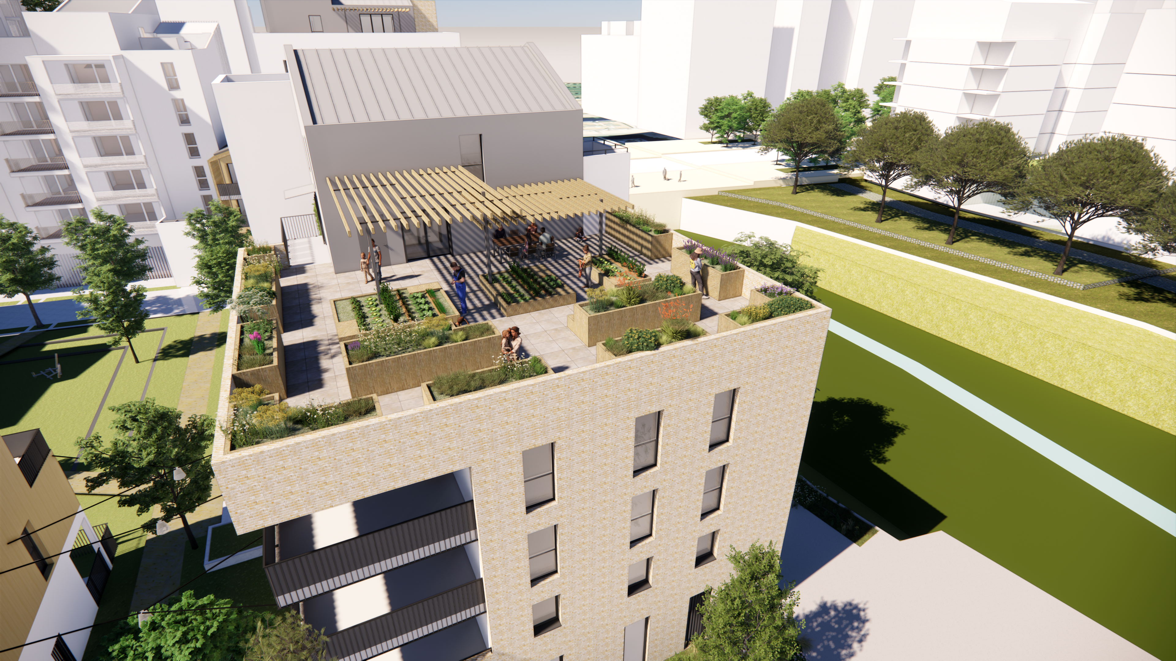 Bénéficiant d’un cœur végétal, à l’abris de l’écrin bâti, l’aménagement paysager propose un jardin luxuriant et autonome, constituant un véritable ilot de fraicheur, poumon de la résidence. L’espace naturel de la Lironde vient s’immerger en cœur d’ilot au travers des failles dans le bâti jusqu’au jardin sauvage, zone sanctuarisée, refuge ou la nature reprend ses droits. Chaque logement s’ouvre sur un espace extérieur privatif généreux, offrant une vue sur le cœur végétal ou sur la Lironde et le paysage lointain.